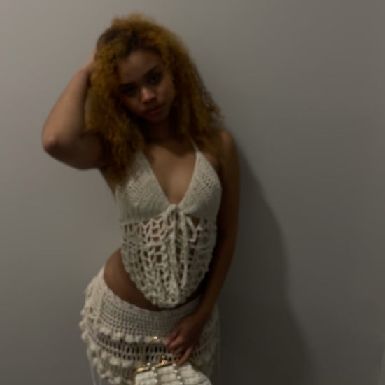 This 2 piece set is perfect for adding some glam to your summer nights at the beach or any glamorous event. The iridescent details make this set truly unique and eye-catching. Make a statement and be the envy of everyone with this one of a kind outfit.